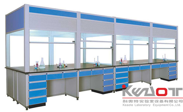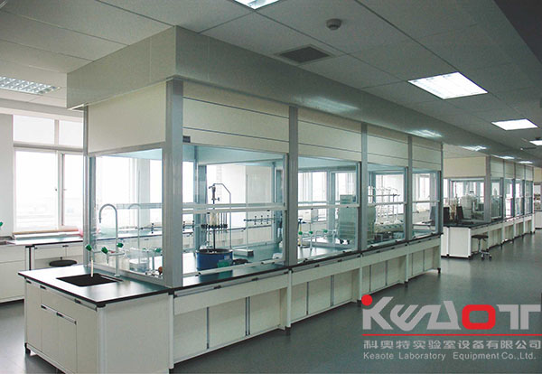 對(duì)于有機(jī)溶劑等揮發(fā)性氣體較多且化學(xué)反映較強(qiáng)烈的實(shí)驗(yàn)室,可采用柜式通風(fēng)方式,直接、及時(shí)、且有害氣體不易擴(kuò)散。有機(jī)實(shí)驗(yàn)室均采用這種方式風(fēng)管走在柜上,四周用鋼化玻璃,操作視窗雙面可開,柜式排風(fēng)是有機(jī)實(shí)驗(yàn)室的特色。